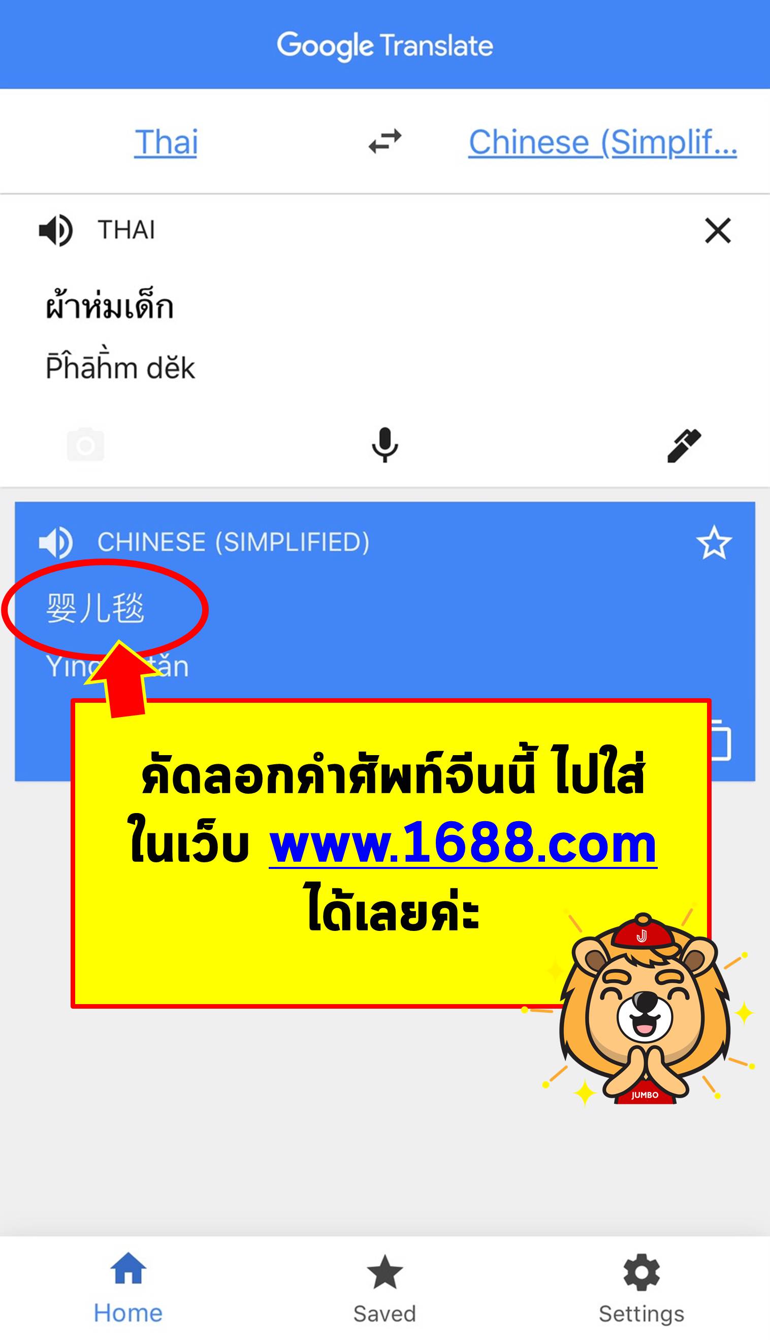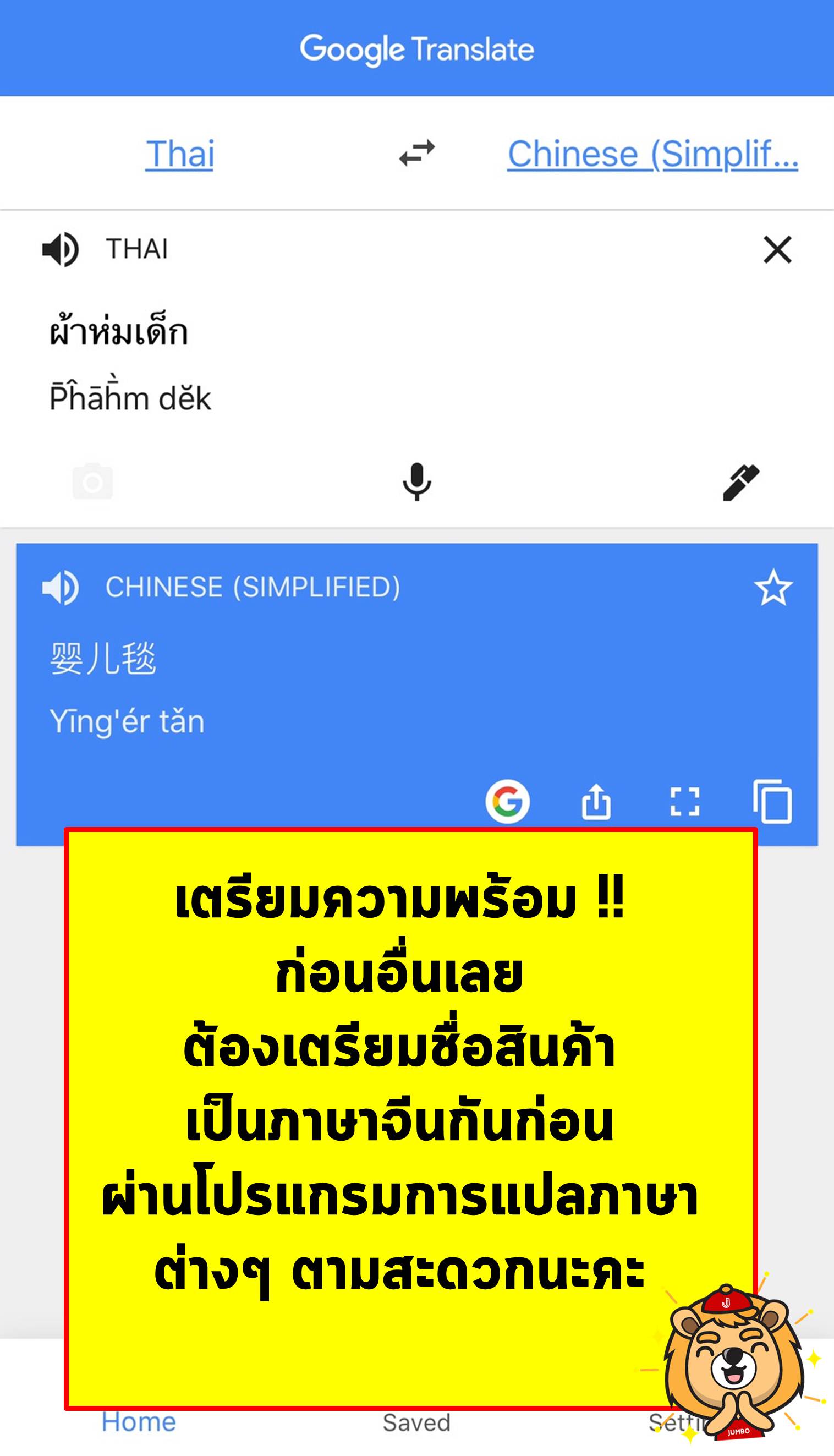 ในตัวอย่างนี้จะลองแปลชื่อสินค้า ผ้าห่มเด็ก เป็นภาษาจีนเพื่อลองหาสินค้ากันดู