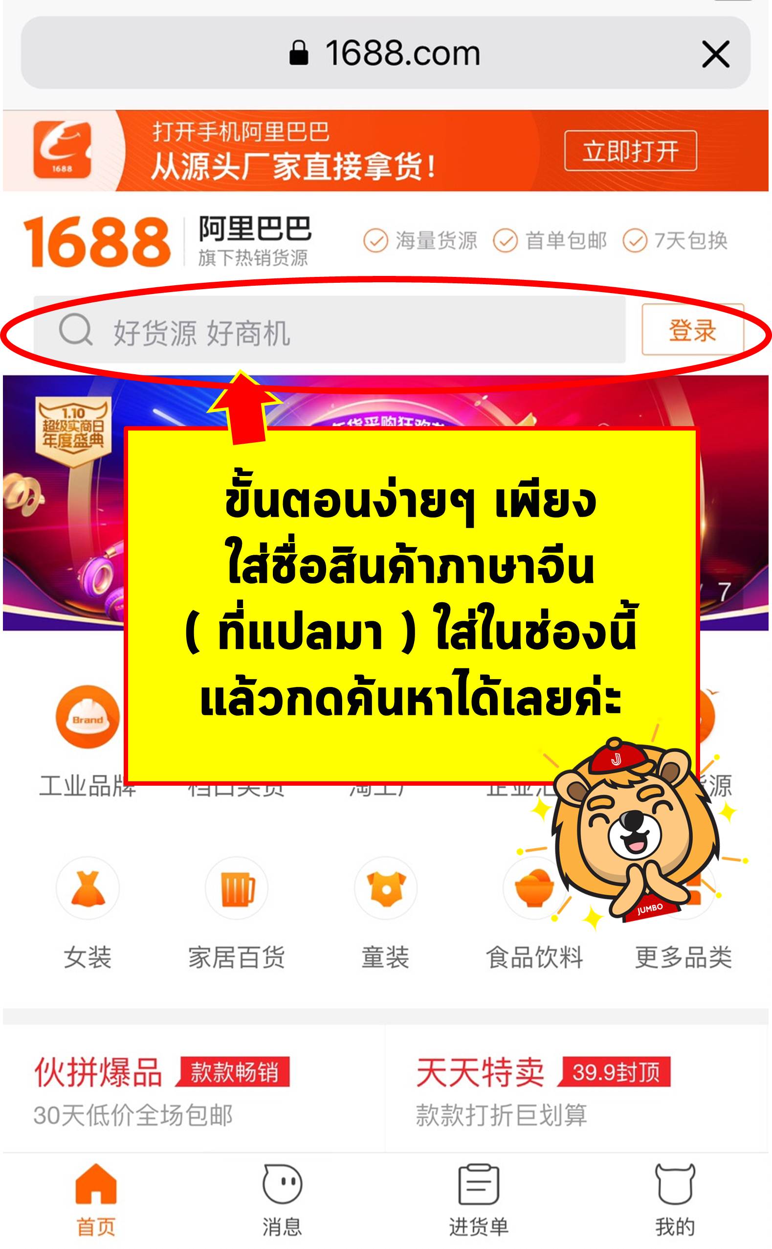 ขั้นตอนที่ 3 : ค้นหาสินค้าในเว็บ 1688