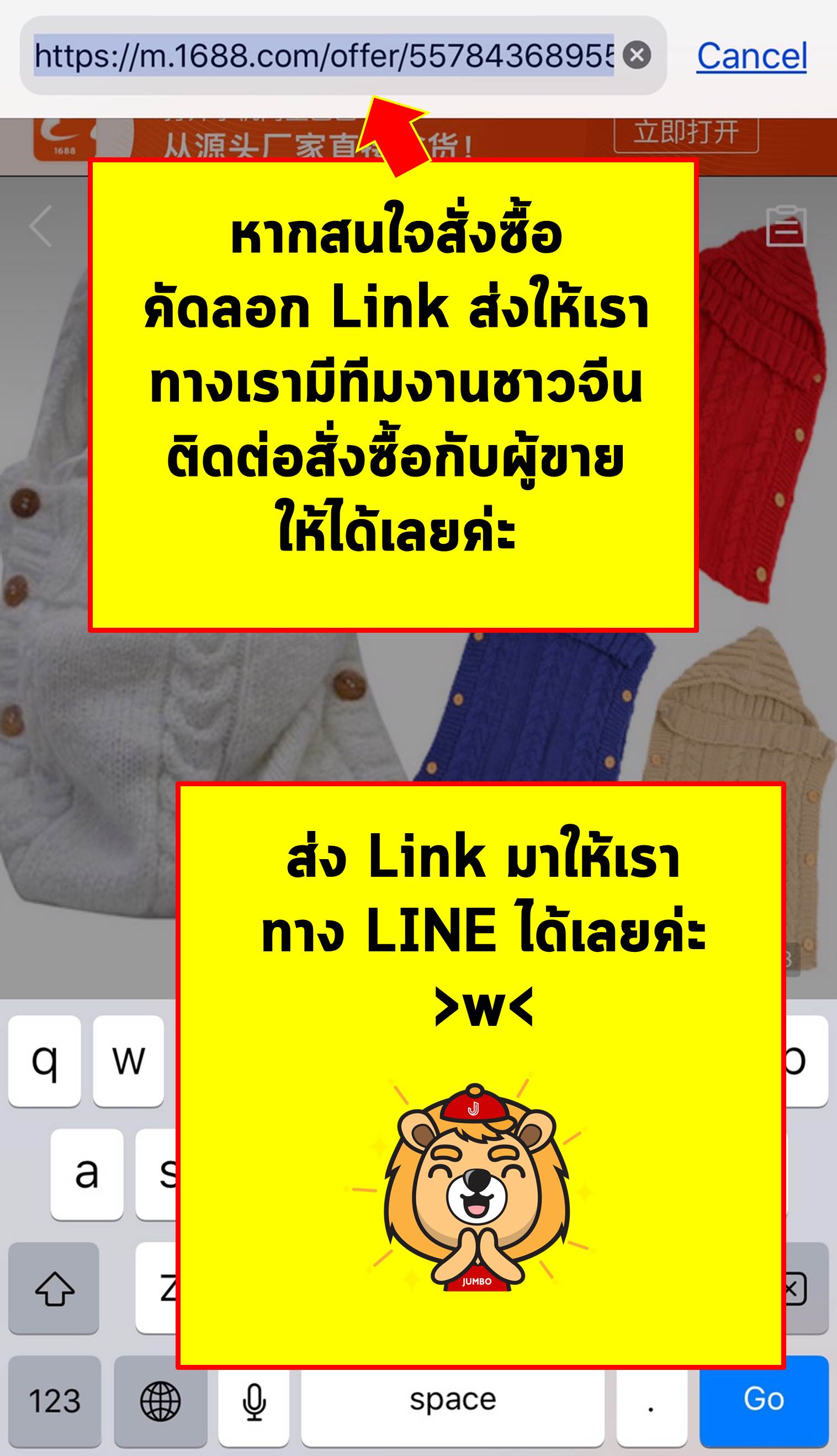 ขั้นตอนสุดท้าย : คัดลอก Link ของเว็บ 1688 ของสินค้าที่ต้องการสั่ง ส่งมาให้เราผ่าน LINE ได้เลย